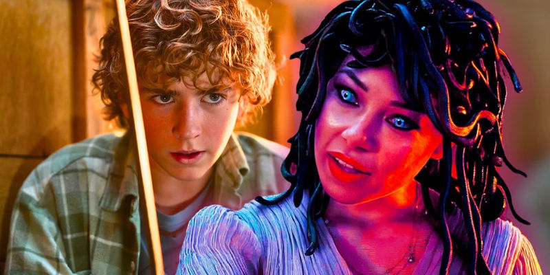 Percy (Walker Scobell) and Medusa (Jessica Parker Kennedy) in Percy Jackson and the Olympians season 1 episode 3