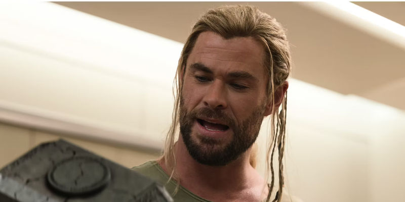 Thor looks at Mjolnir in Thor: Love and Thunder