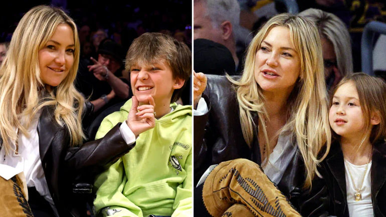 Kate Hudson Enjoys Lakers Game with Her Two Children