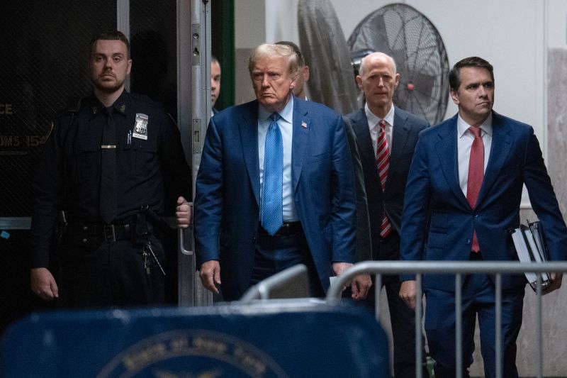 Former President Donald Trump, accompanied by his attorney Todd Blanche and Sen. Rick Scott, arrived at Manhattan Criminal Court on May 9 for his trial related to allegations of covering up hush money payments in New York City.