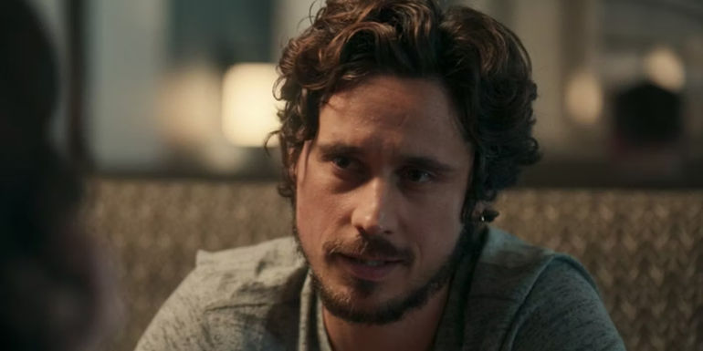 Adam (Peter Gadiot) looking at someone offscreen in Yellowjackets.